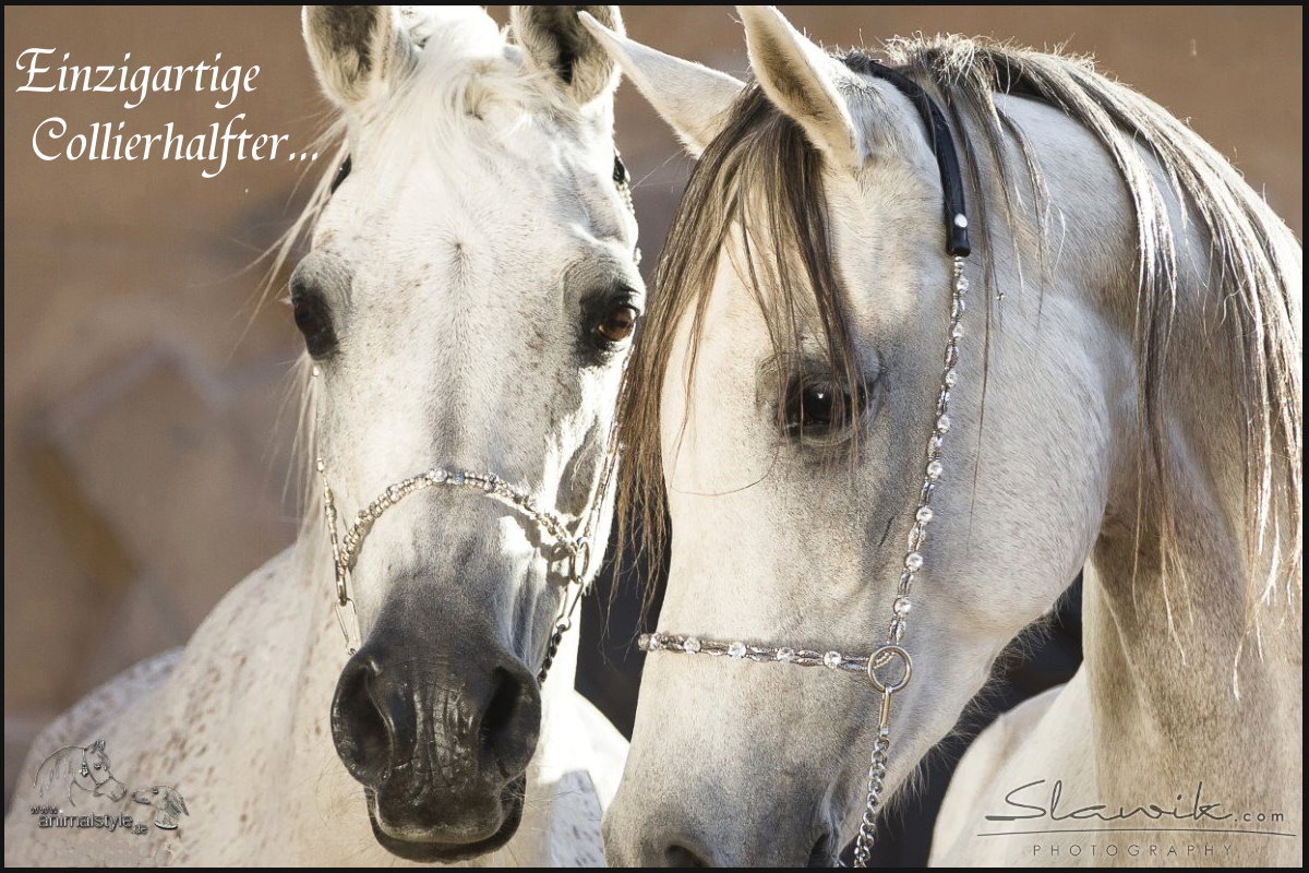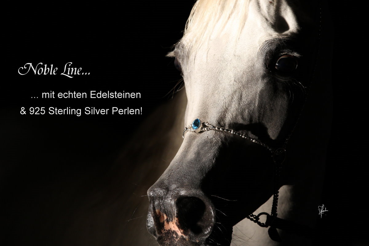 Hier treffen Leder, Edelsteine & Perlen aufeinander. Ob ein edles Showhalfter, stilvolles Reithalfter oder ein einzigartiges Halsband für Deinen Hund.