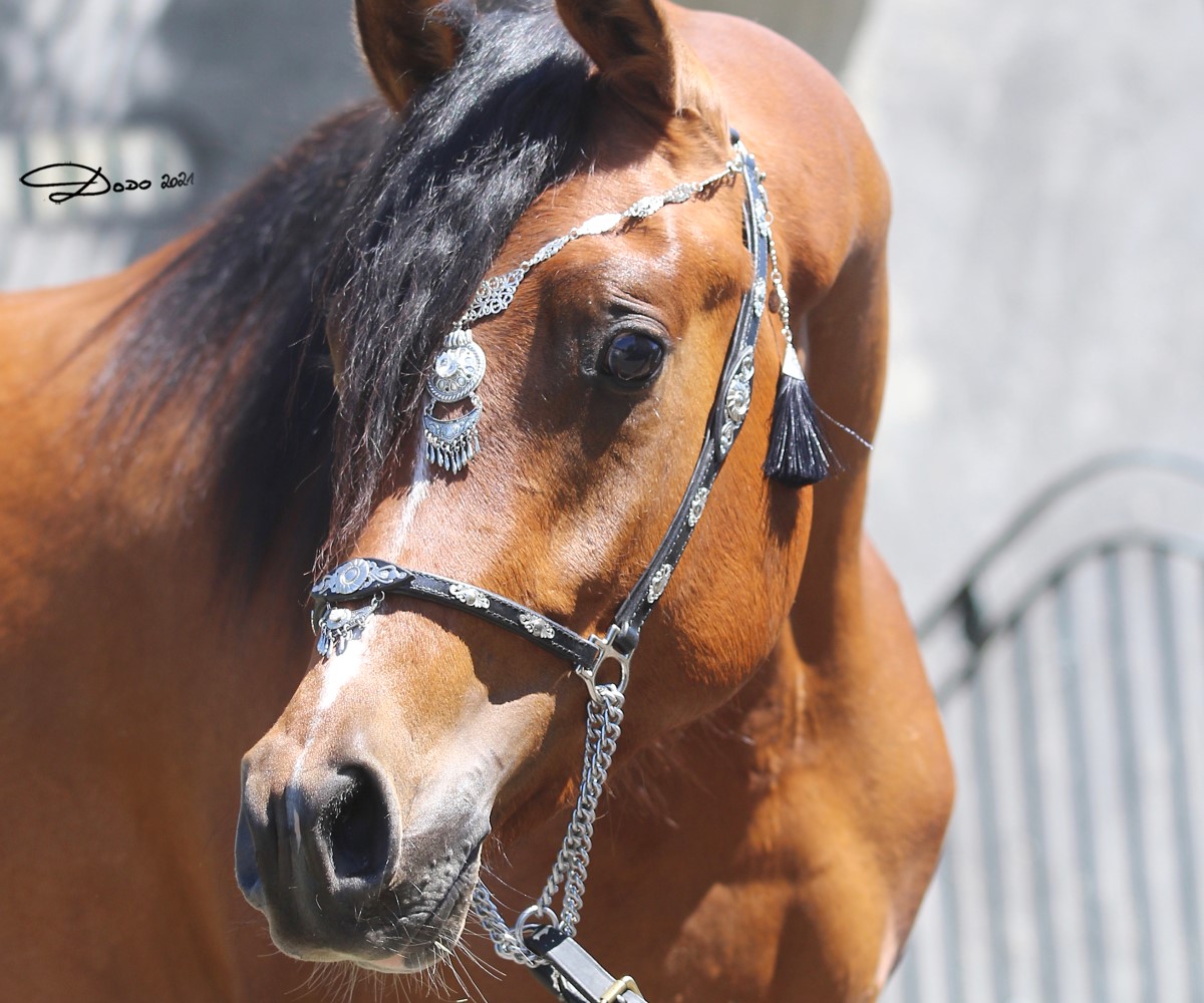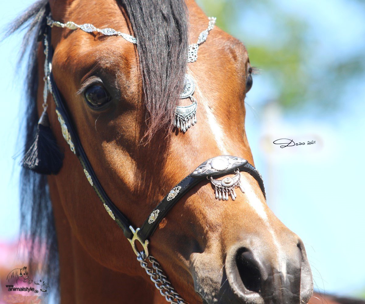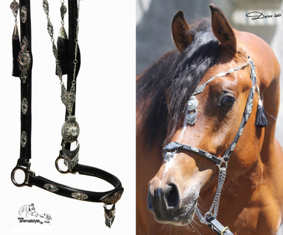 The size of the halter can be adjusted by approx. 12 cm in the neck area for optimum adjustment options. The brow decoration made of artfully designed metal amulets can also be easily removed or replaced using small carabiners - perfect for a variable look depending on the occasion.